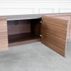 The Burke 78″ TV Stand combines sleek mid-century design with modern functionality. Its minimalist profile features rounded edges and tapered legs for an elegant appearance. The spacious cabinet includes four compartments with cable management holes for organizing media equipment. Perfect for contemporary living spaces, this low-profile unit offers both style and practicality.
