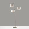 Upgrade your space with the Cabo Arc Floor Lamp, a versatile and stylish lighting solution. Standing at 82″ tall, its clean lines and long arms effortlessly complement urban, industrial, or mid-century modern decor. The lamp features three arms, each topped with a textured white fabric drum shade and a 100W bulb (not included). The brushed steel finish adds a modern touch, while the round base provides stability. Perfect for reading, working, or adding ambiance to any room.